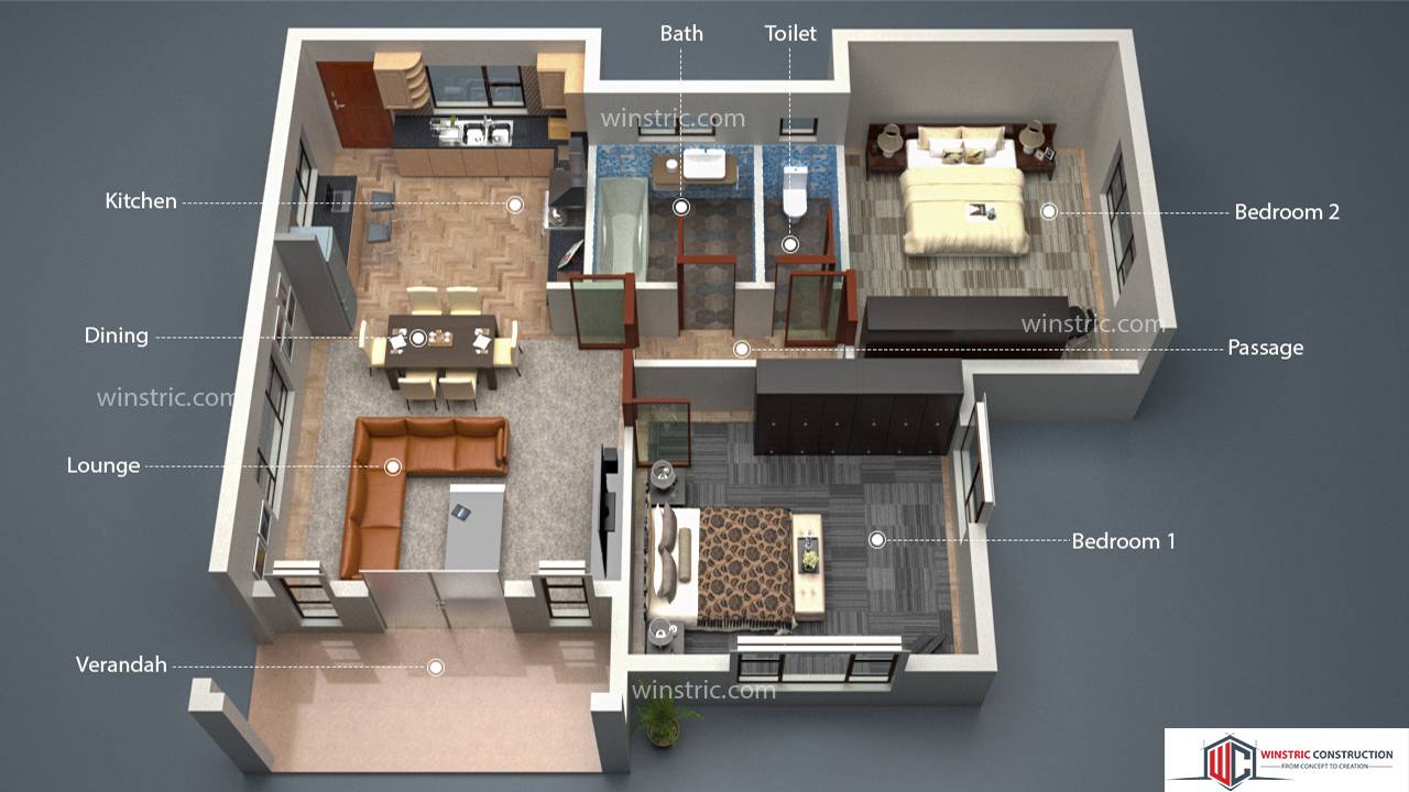 An open plan with 2 bedrooms fit for a small family. Bedrooms on the opposite side of the lounge and kitchen. The bedrooms allow for great views out of the two large windows set on separate sides of the room.