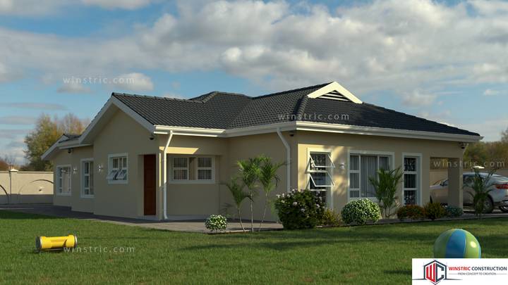 A 3 bedroom house with simple modern wall paint. I has a big lounge and open to the kitchen. It has an office for flexibility to work at home. The roof adopted the Dutch concept.
