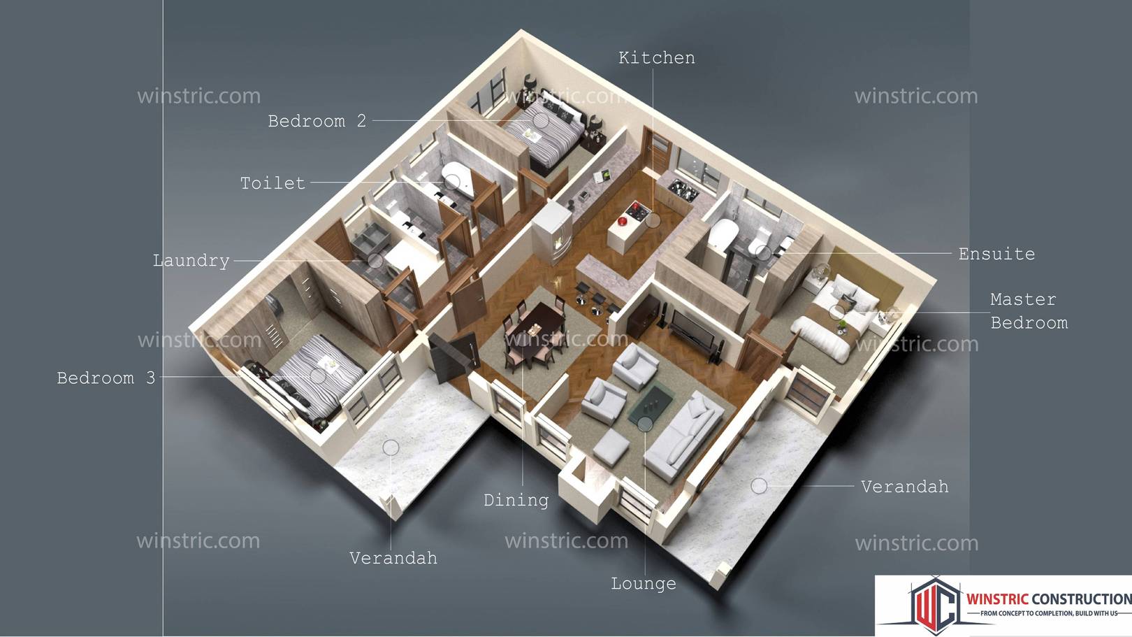 Modern design of a 3 bedroom house plan perfect for a medium earning couple. It has modern finishes that gives it an outstanding look. This is the perfect economic house you are looking for.