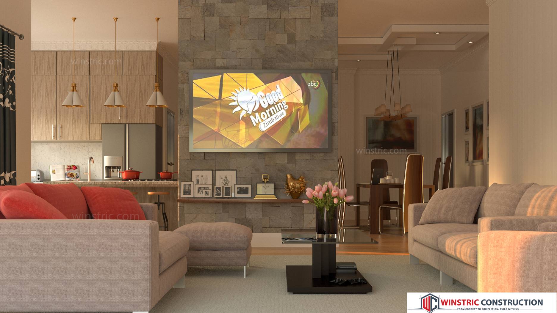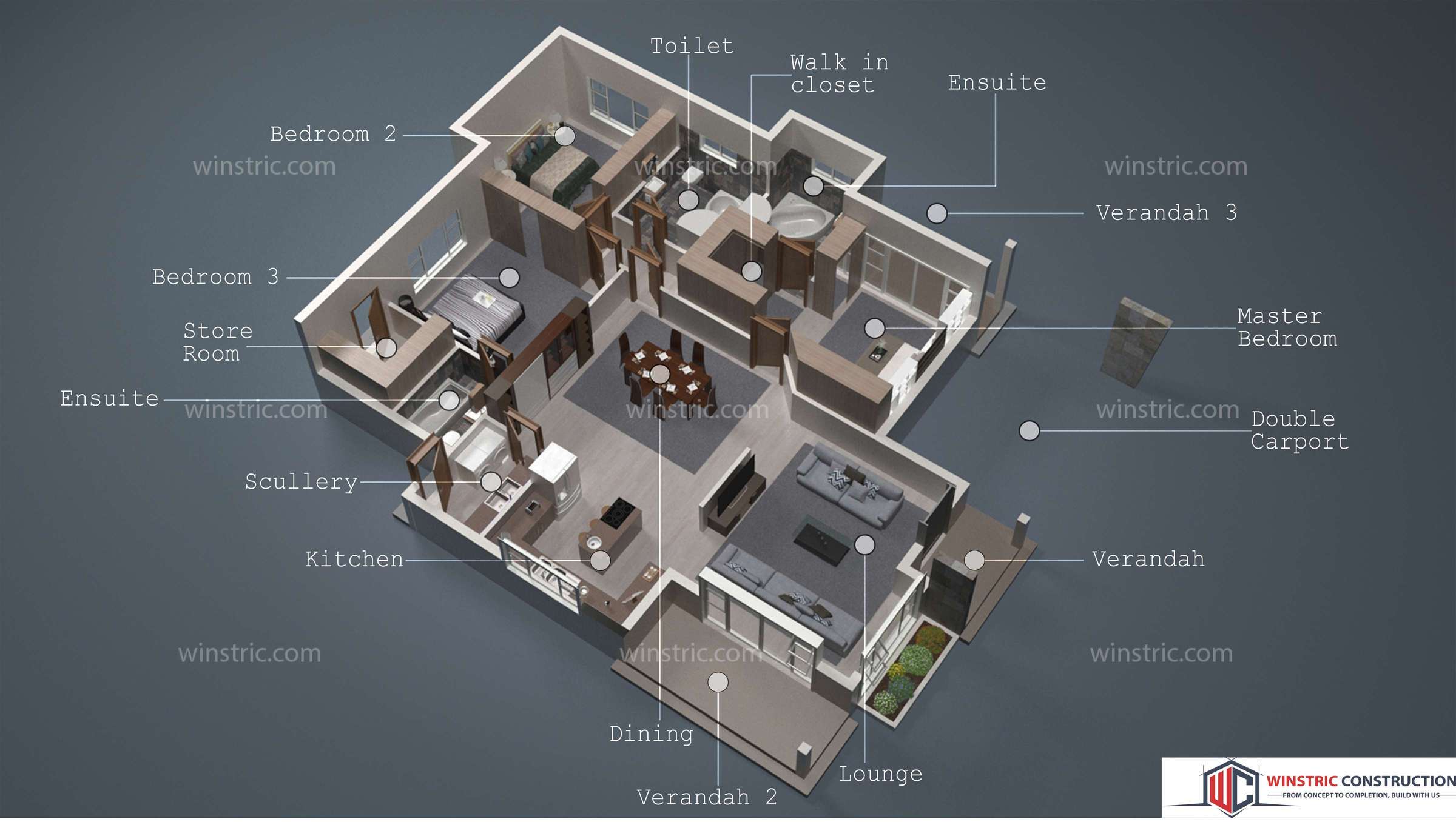 This is a stunning modern 3 bedroom house. From the entrance you are greeted by an open plan that integrates the lounge, dining and kitchen. It has 3 bedrooms that are spacious and 2 bedrooms has ensuite including the master.