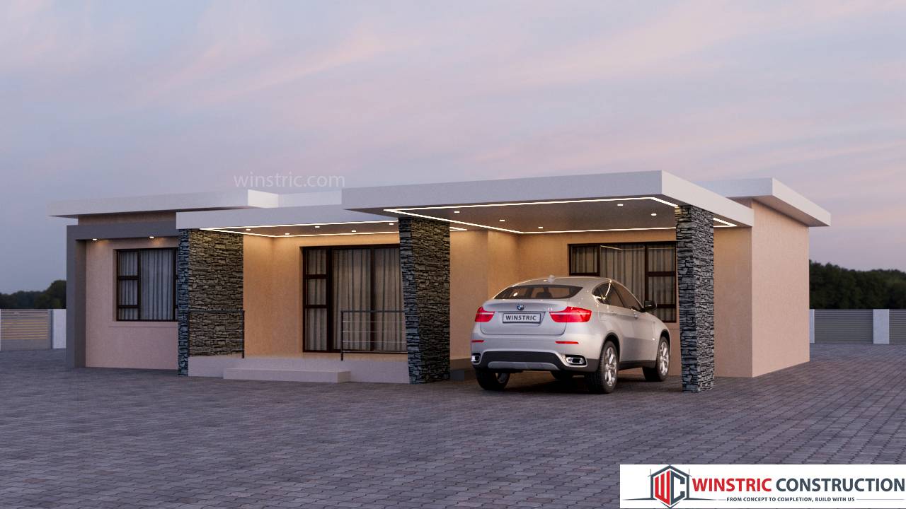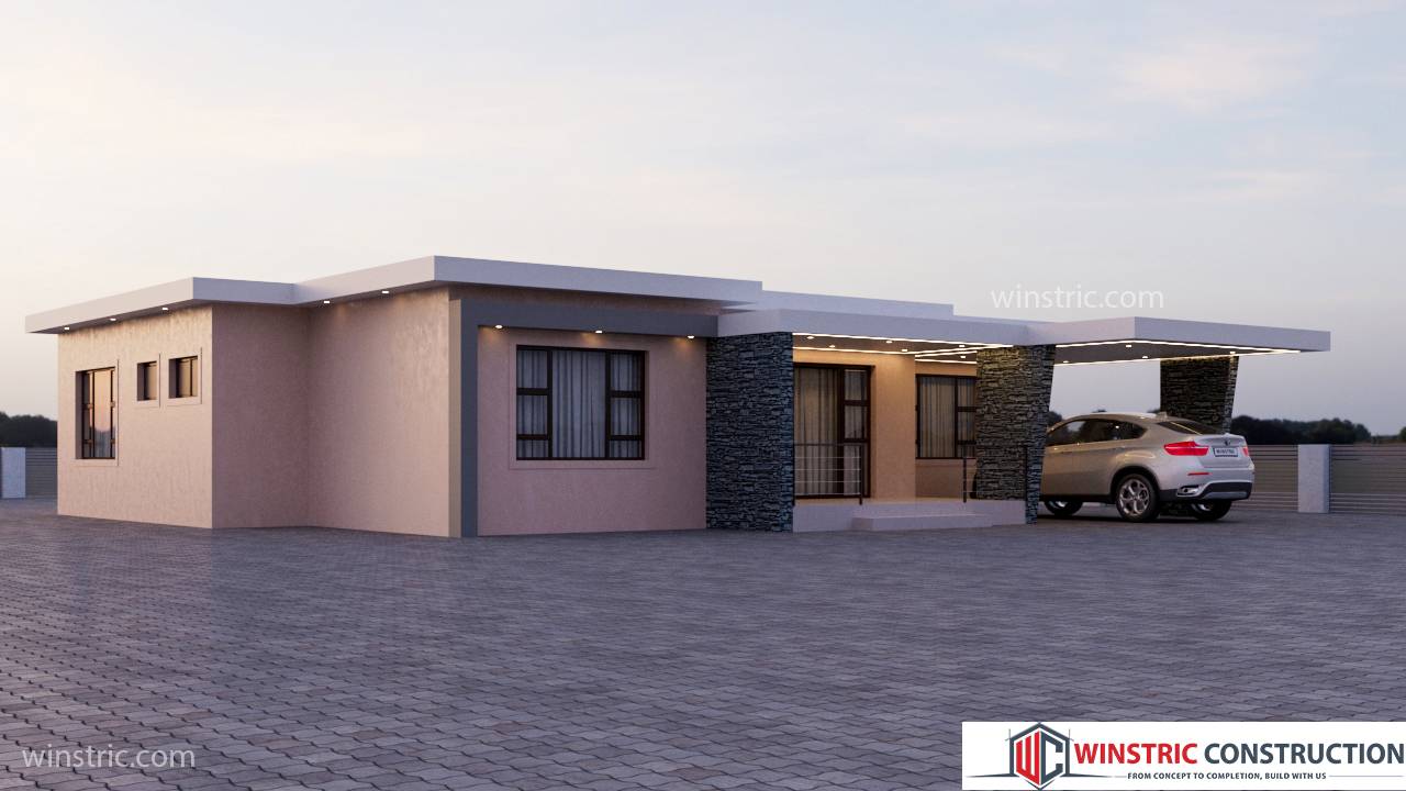 A contemporary 3 bedroom house is comfortable and has an easy circulation. The big living room is perfect for relaxing and spending time with family. Next to the living room is a dining room, where the family can enjoy meals together.