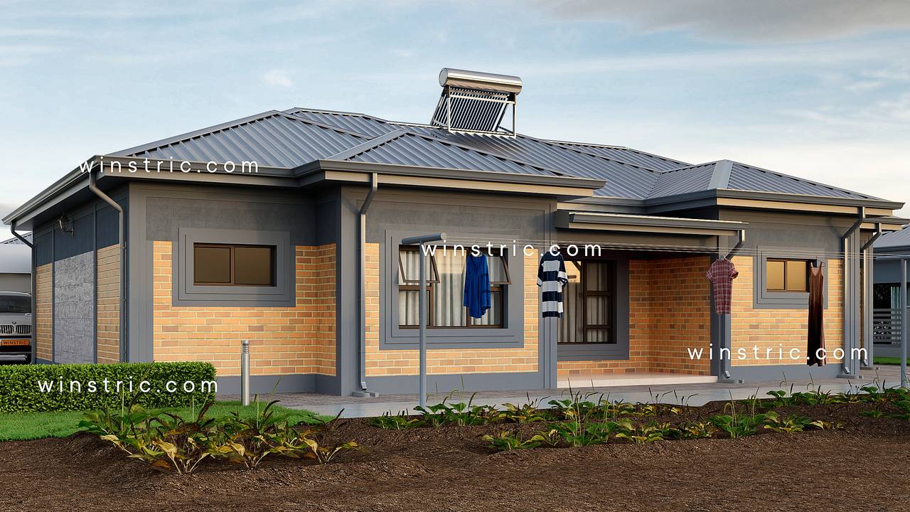 An open plan stylish 3 bedroom house plan that is spacious yet simple with natural bricks. This plan is casual yet so elegant making it an ideal home for a family. The front porch opens to the living room, while the rear porch accesses the kitchen.